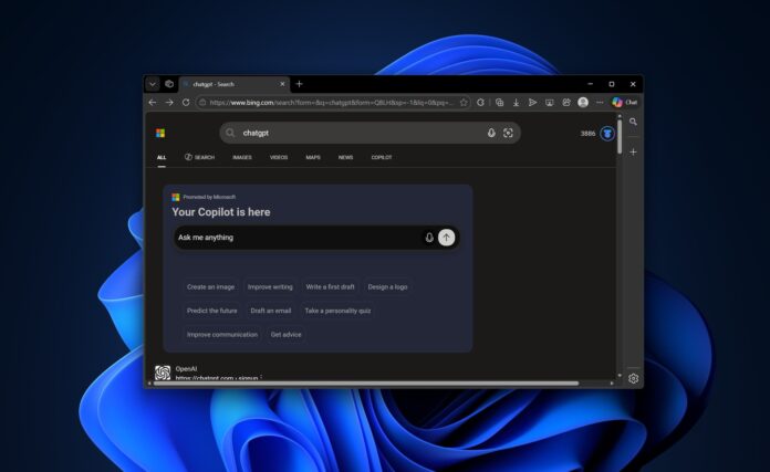 Bing正在劝阻Windows 11用户尝试ChatGPT和Gemini。在我们的测试中,Windows Latest观察到,当搜索ChatGPT和Gemini时,Bing会显示一个交互式的Copilot小部件,大小约是搜索页上传统链接或广告的五倍。